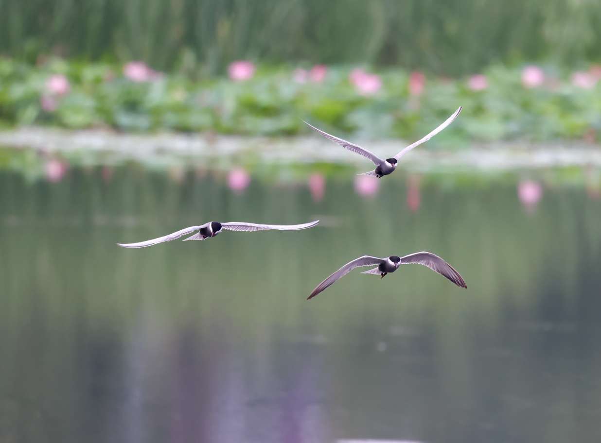 济南华山湖生态环境改善,吸引上百只 须浮鸥在此繁殖栖息